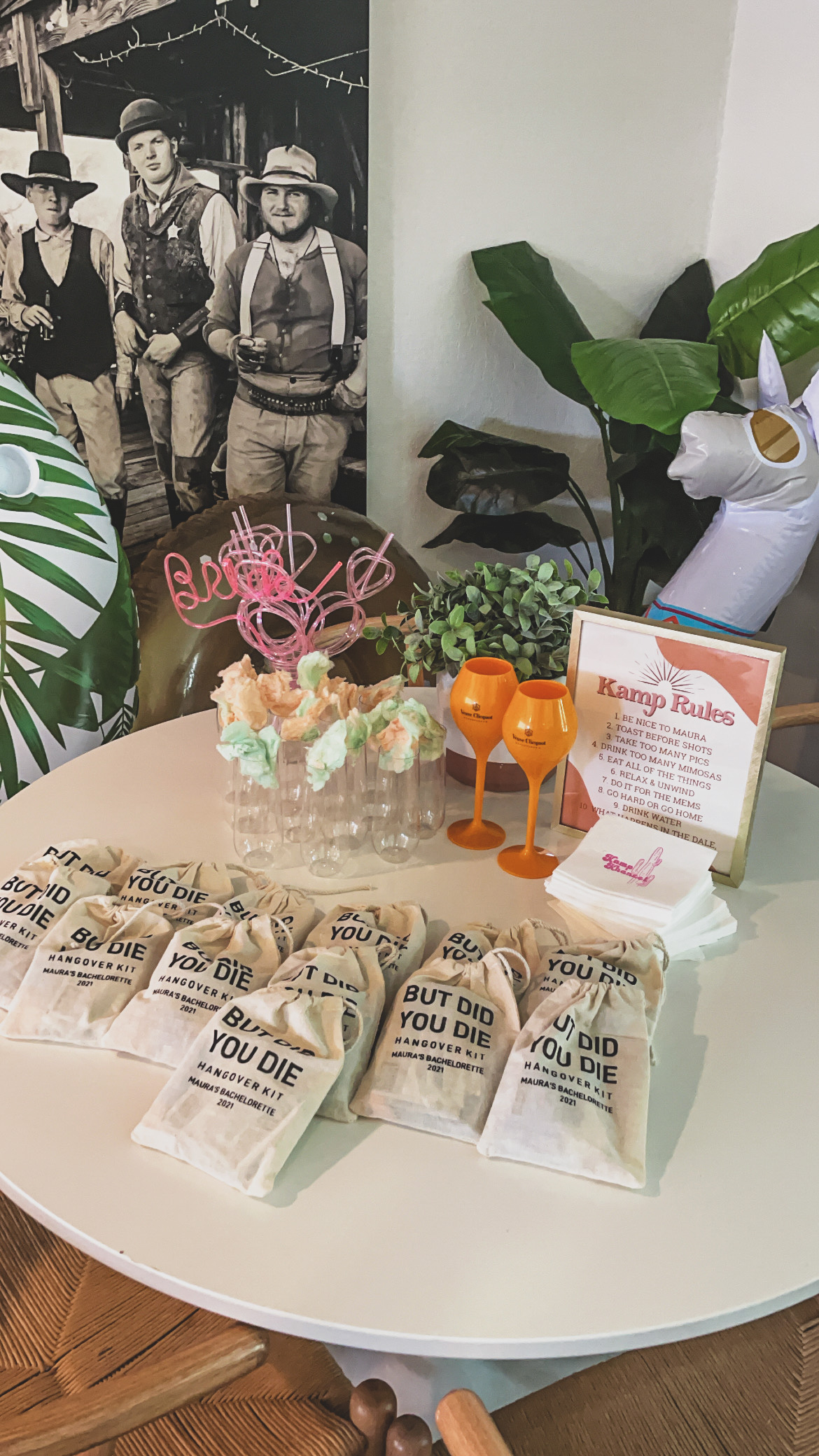 I made up “Kamp Rules” using the same template as the “Drop Your Panties” and got customized napkins from For Your Party to add a little personalization! Love adding these little details to make the bach unique and memorable!