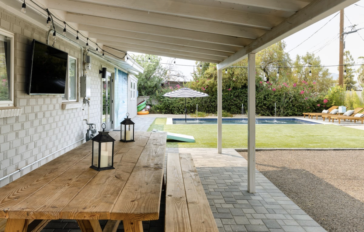 AIR BNB: If there is one thing I can recommend about renting an Air BnB in Scottsdale, it is to get one with a pool. Most of them have one! It was the best to lounge around the pool during our down time. I loved our Air BnB because it had the most beautiful outdoor space with a fire pit, grill, large dining table for a large group/perfect flip cup table, pool, and a cute little photo backdrop! The inside was also absolutely gorgeous and aesthetically pleasing! The only thing that I would have changed was that it only had 2 bathrooms for 13 girls, but we managed! The owner was absolutely amazing too.