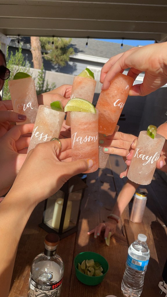 **I added the Himalayan Salt Shot Glasses as a nice touch for “name cards”. They were super pricey on Etsy so I found them at a cheaper cost on Amazon and had @ajcallig add the names on for $2 per glass. Seriously hit her up for all of your calligraphy needs!