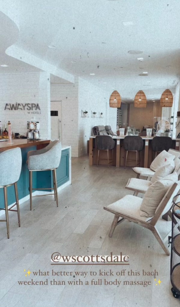 Before all of the girls arrived on Thursday, I scheduled Maura and I massages at the W Scottsdale Away Spa. It was exactly what we needed post hiking camelback mountain and getting ready to get rowdy for the start of bach weekend. Prior to the massage they give you a wellness ginger shot to detox then after the massage they craft up a cocktail for you to retox! LOL! Such a rejuvenating experience.