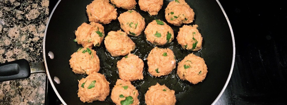 1. Combine all ingredients (except oil) & form into balls. Add oil to pan over medium heat & cook for 4-5 mins each side or until cooked through